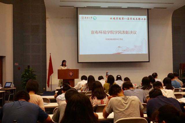 会议以“那些年,老师打动你的一瞬间”、“课堂精彩瞬间”、“科研达人分享经验”、“勤学修德 明辨笃行——优秀班级风采”、“此‘间’少年——学习型寝室情景剧”、“不忘初心 筑梦前行——毕业生代表寄语”、“立鸿鹄志 做奋斗者——教师代表寄语”等精彩环节让在场的同学们从朋辈教育、学长引领、教师培育等方方面面真切地感受到了榜样的力量。据悉,环境学院学风表彰大会至今已举办了八届,旨在激励学院师生共同携手、齐心协力,培育优良学风,再谱全新华章。