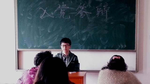 答辩伊始,每位积极分子通过阐述入党动机、对党的认识,展示自己在理论知识学习方面的进步,并介绍自己在平时生活中践行“为人民服务”这一宗旨的点点滴滴。各位入党积极分子较多地受到身边党员亲戚、朋友以及各类影视作品中人物的影响,深刻认识到党对社会进步起到至关重要的作用。这些积极的影响让大家一直坚定地向党组织靠拢,了解党的历史,学习党的政策,从身边小事做起,以成为一名优秀的共产党员为目标前进。