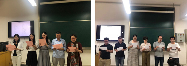 活动在国歌声中开始,全体党员举起右手,重温入党誓词。辅导员办公室、学院办公室和实验中心先后以部门为单位,以“我和我的祖国”为主题进行了诗朗诵。党员们饱含热情地讴歌祖国,表达对祖国深切的热爱。