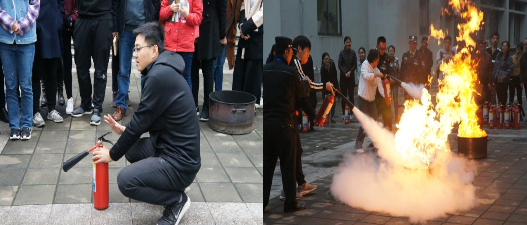 公司师生到达疏散集合地后,消防灭火演练开始。先由校消防科王立军老师对学院师生进行了灭火器使用讲解,使师生们在短时间内掌握了灭火器的使用方法和灭火技巧,师生数十人进行了实际操作演练。
