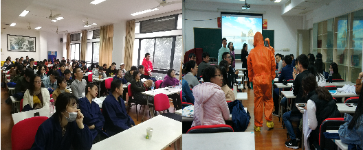 启动仪式结束后,百尺公司的安全工程师对环境学院师生进行了化学品泄露相关应急知识培训和化学品泄露安全事故紧急处理演练,教会员工使用安全防护装备,掌握实验室安全事故的应急处理过程和注意事项。随后,在4号楼环境学院开始化学品泄露安全事故紧急处理演练和紧急消防安全疏散演练及消防灭火演练。
