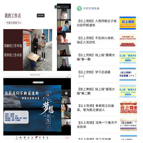 本期培训内容主要分为基础篇、升级篇和实践篇三个部分,其中基础篇注重理论知识的积累,主要开设了“入党流程解读”、“环境学院员工党支部工作介绍”等课程,同时要求学员自学包括《共产党宣言》、《中国共产党章程》、《中国共产党党员教育管理工作条例》、《习近平新时代中国特色社会主义思想学习纲要》和环公司党漾青春“战‘疫’特辑”系列等学习资料。升级篇则是紧跟时事热点,围绕抗疫主题设计了多项课程。实践篇更加注重党员的自我教育和实践作用,组织学员围绕“理想信念的力量”的主题开展指尖微党课,开展线上“最强大脑”知识竞赛等。