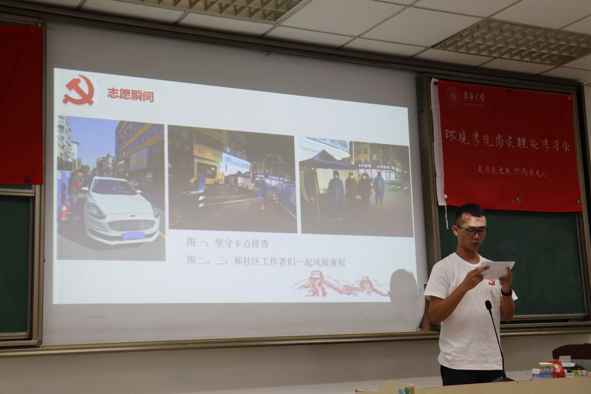 同时,抗疫志愿者代表宋宾学学长分享的抗疫志愿故事也让学员身临其境,了解到抗疫背景下的党员志愿者的暖心与无私,体会到党的不畏艰苦,大爱无疆,永持一颗赤诚之心全心全意为人民服务的奉献精神。
