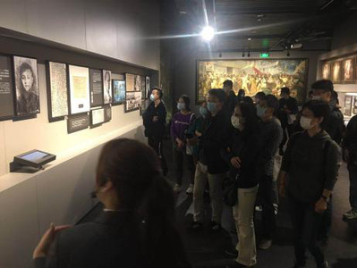 随后,党员老师与同学们步入了龙华烈士纪念馆,通过馆内讲解员细致、专业的讲解,一行人对龙华先烈的英雄事迹有了更加深入的了解。纪念馆中陈列了数百位烈士的相片和遗物,讲述着他们的事迹。顾正红、林育南、赵世炎、罗亦农、李求实、杨开慧等共计1600余名烈士,他们的平均年龄还不到35岁,“龙华二十四烈士”中年龄最小的英雄欧阳立安就义时年仅17岁。他们当中有,为了革命事业将孩子送到育婴堂的革命夫妇李文、恽雨棠烈士,“投身革命即为家,血雨腥风应有涯。取义成仁今日事,人间遍种自由花。”李文夫妇为了他们心中崇高的理想和信念,为了民族独立解放,奉献自己年轻的生命。在展品中有一件弹痕累累的羊毛背心,普通的毛衣上却可清晰的看到数个狰狞的弹孔。它是左联五烈士之一的冯铿女烈士,一针一线为丈夫许峨精心织成的。就在1931年最冷的冬日里,冯铿被捕了,直至被敌人无情的子弹杀害。苍天有泪,岁月有情,19年后,正是这一件羊毛背心,让许峨认出了冯铿,龙华二十四烈士也同获昭雪。同样是那个冷酷冰冷的年代,共产党人周文雍、陈铁军在刑场上宣示的婚礼,龙华二十四烈士中的蔡博真、伍仲文在囚车内举行的婚礼。这些催人泪下的悲壮的浪漫,让人看到了人性的光芒和信仰的伟大。“在这里,他们竟强迫死神做了一次月下老人,死神也不得不低头了”。党员老师和同学们,通过裸眼3D的光影展示,认真观看了“龙华二十四烈士”纪念剧,这些烈士的身份包括共产党党员、共青团团员及左翼作家联盟作家,在1931年2月7日于龙华看守所外遭到秘密杀害,1933年鲁迅发表了著名的文章《为了忘却的纪念》就是为了纪念他们。先烈们抛头颅,洒热血,用自己宝贵的生命,为我们创造了今天的美好生活和发展环境,他们的伟大功勋将与日月同辉,千古流芳!英魂虽逝,精神犹存。
