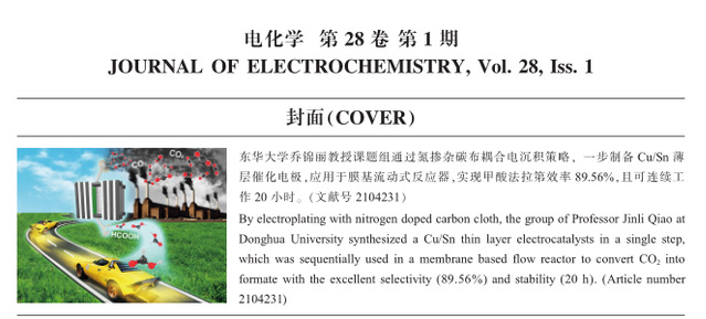 公司乔锦丽教授课题组工作被选为中国《电化学》 2022年第1期封面论文