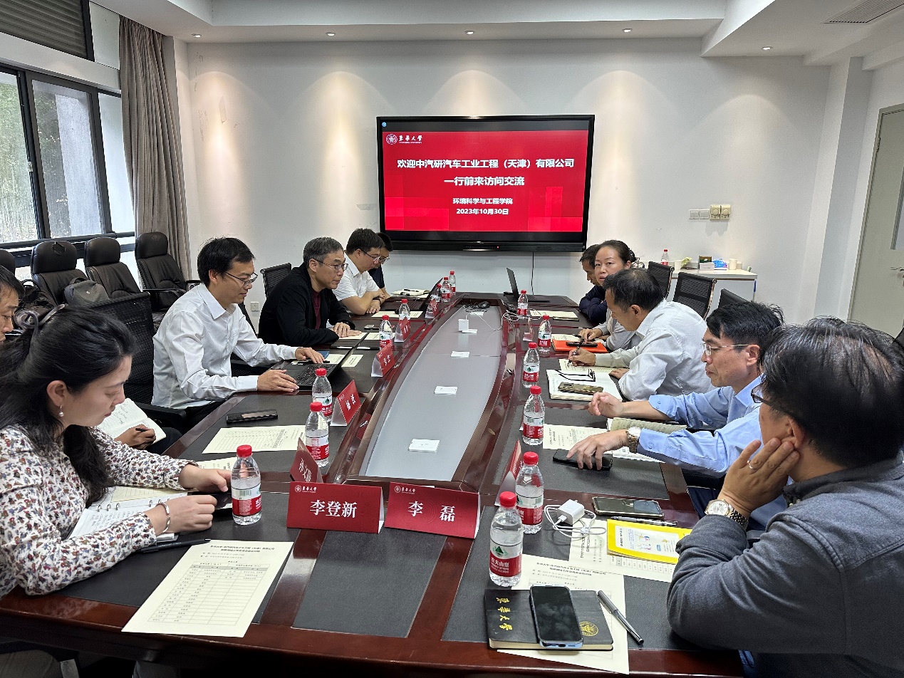 10月30日,中汽研汽车工业工程(天津)有限公司党总支书记、总经理金涛,双碳技术总监张志辉、张然等一行来公司访问交流。公司党委书记刘建树、经理宋新山,暖通空调研究所、空气环境与建筑节能研究所、新能源与环境研究所等相关负责人及教师代表共同参加了交流。