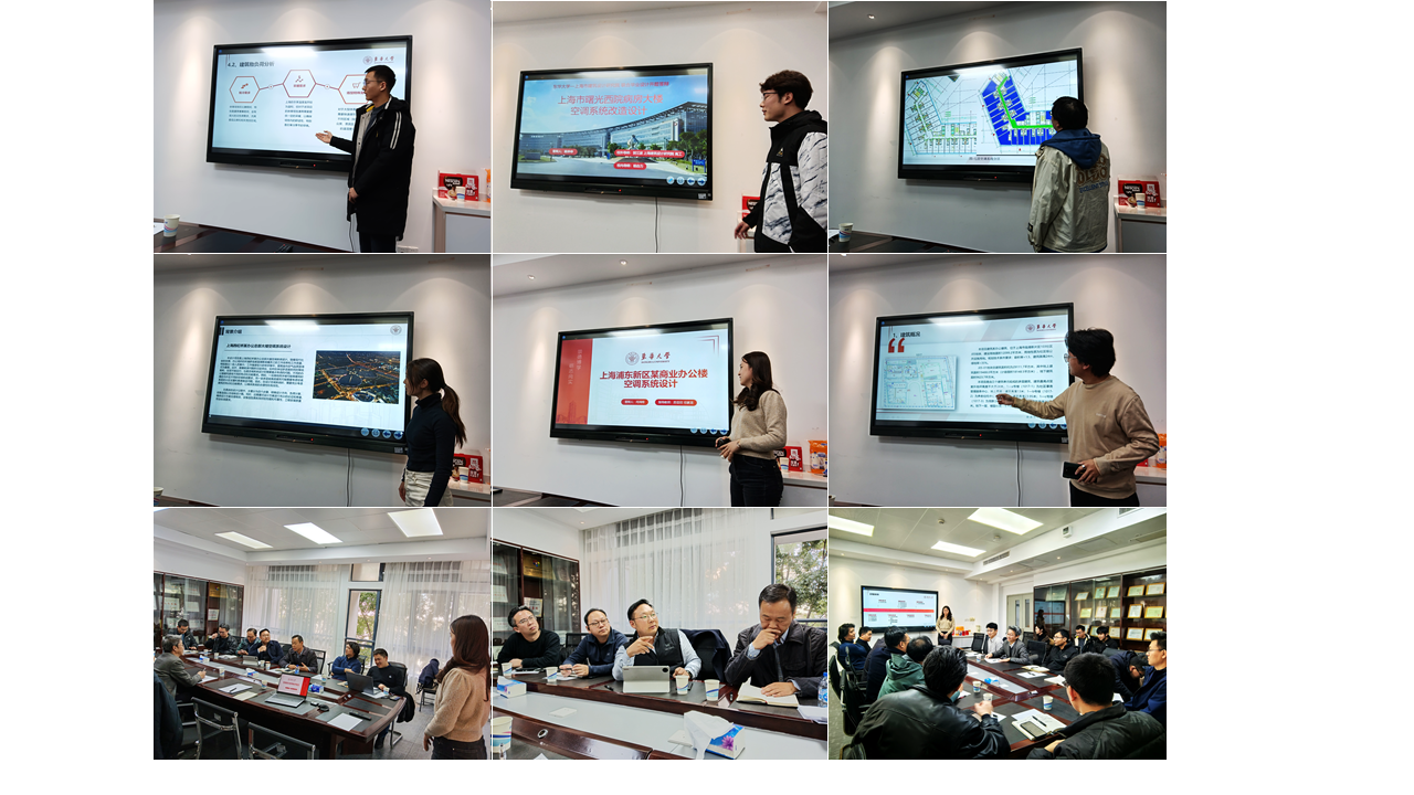 杨自力随后介绍了毕业设计的整体进度安排和开题汇报的具体准备工作。接下来,7名参与联合毕业设计的2025届建环专业同学分别汇报了各自的开题内容。上海建筑设计研究院的专家团队与校内导师们就不同设计项目的社会属性、设计要点、系统划分方法、进度安排合理性、开题报告书写规范性以及演讲逻辑等方面提出了具体的指导意见,员工们也现场回答了专家们的提问。