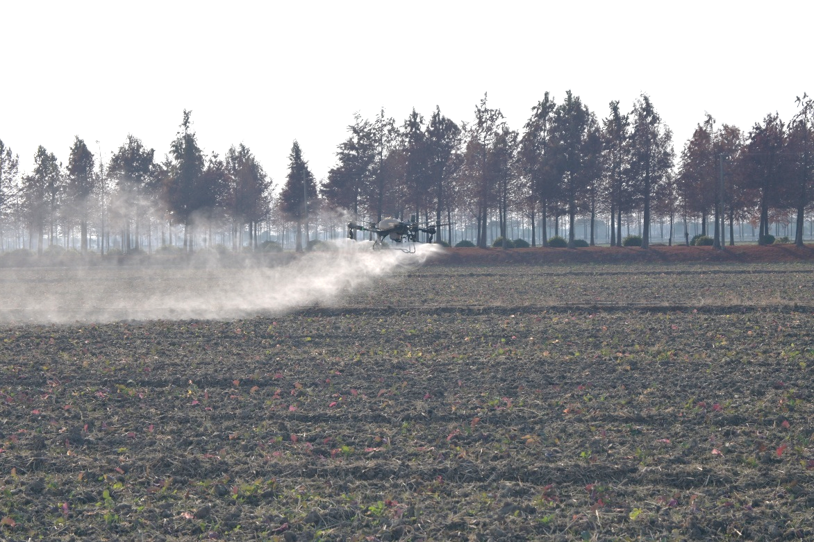 (无人机喷洒黄腐酸液体肥至油菜田)